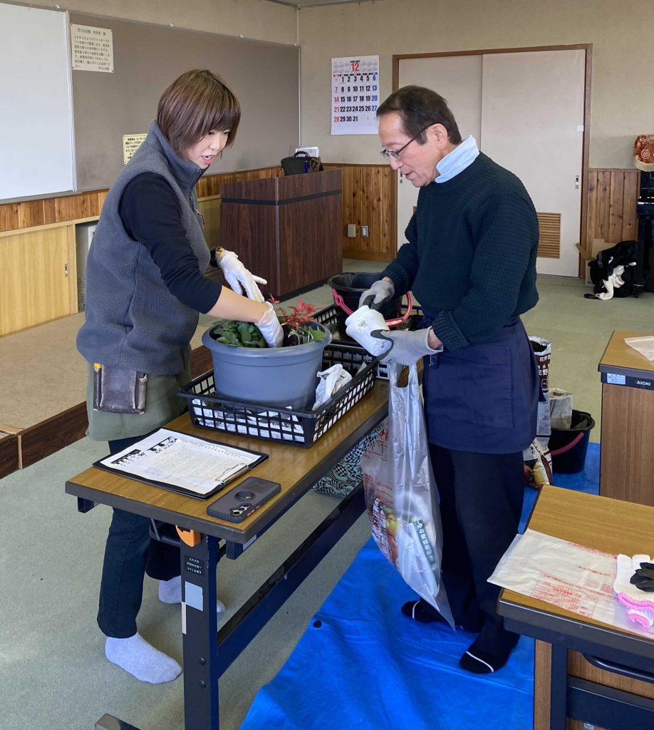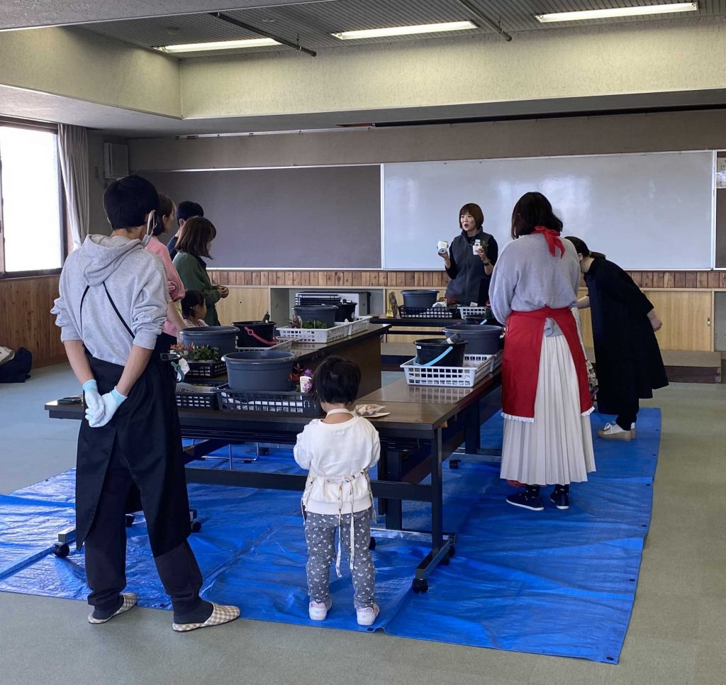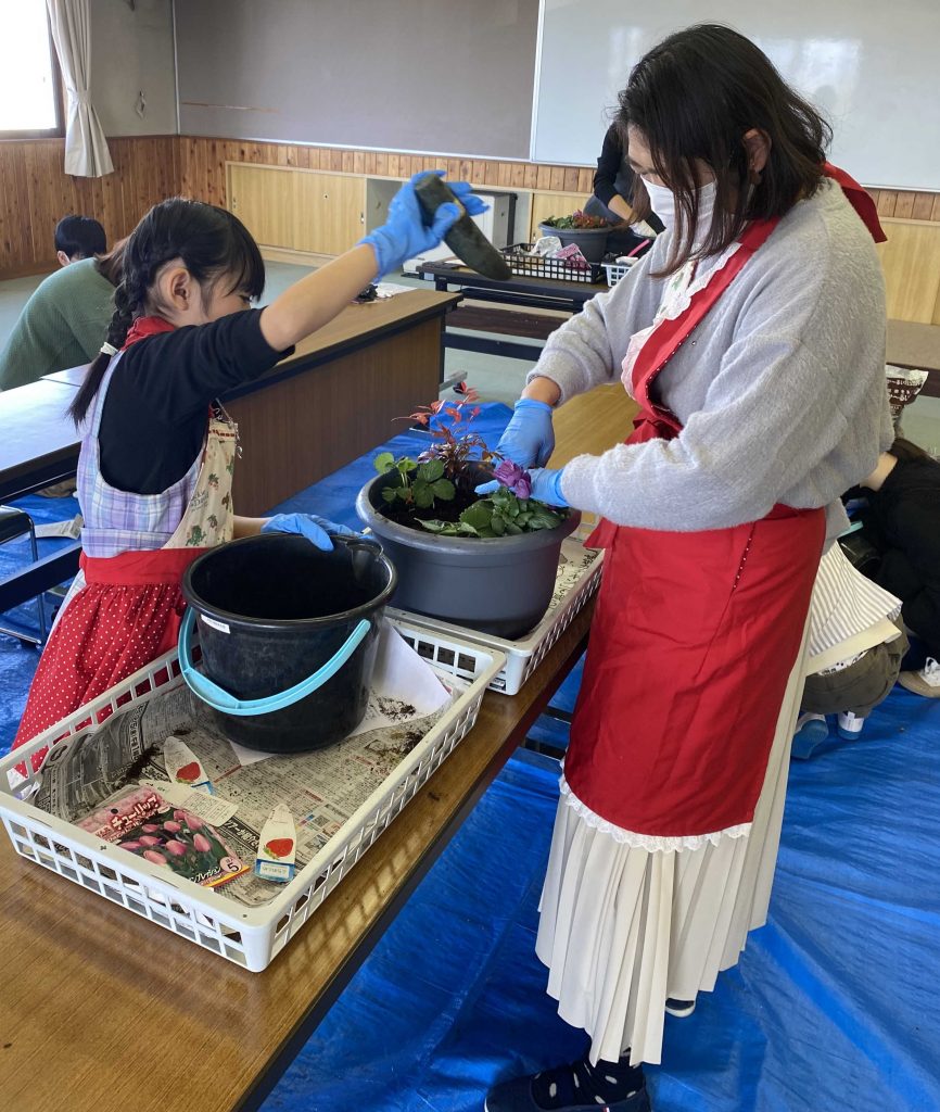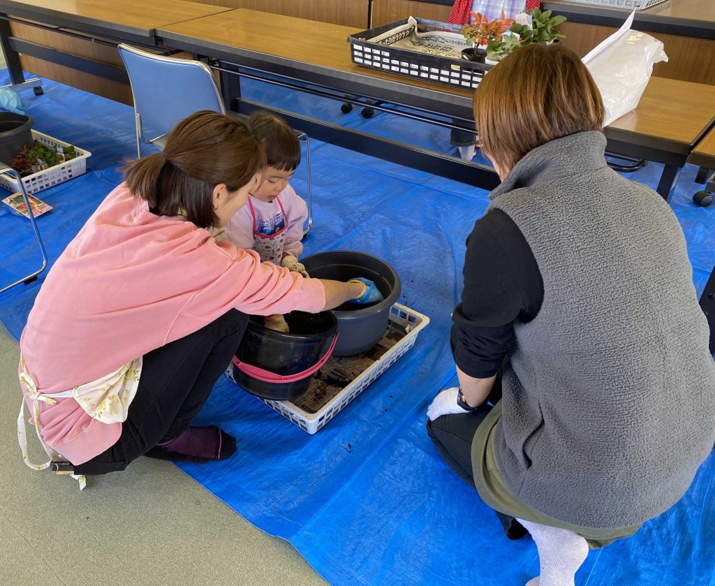 親子で協力し、楽しみながら寄せ植えをされていました。