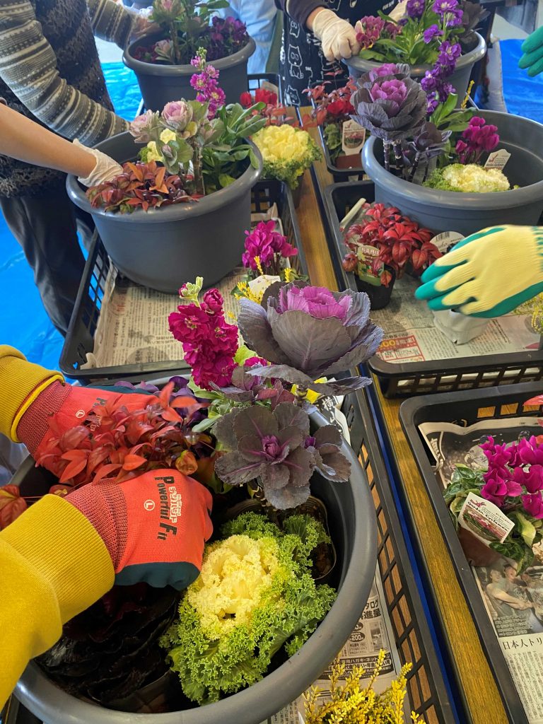 会員様限定のお正月の花の寄せ植え講習会でした。