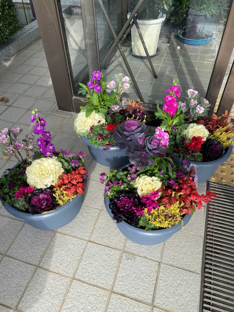 会員様の作品です。玄関前に飾るととても華やかで素敵でした。